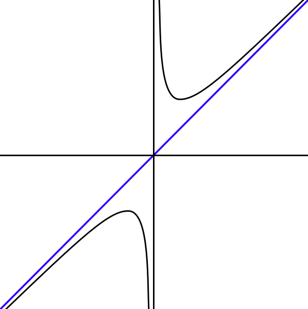 Замечание 2: В некоторых случаях, таких как алгебраическая геометрия, асимптота определена, как прямая, которая является «касательной» к кривой на бесконечности[5].