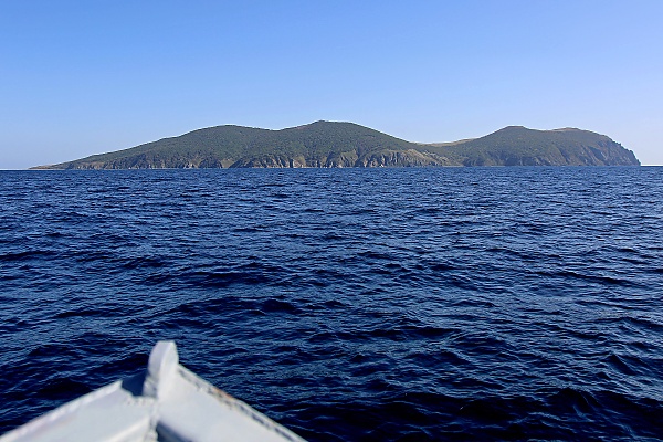 Туманы, постоянно закрывающие подходы к нему, закрывали видимость наблюдателям крепости. Своей выгнутой стороной остров обращён к северу, а южная сторона, обращённая к морю, образует бухту, которая носит имя клипера «Наездник». На её берегу расположен приисковый посёлок, построенный ещё в 1876 году золотопромышленником Кустером. Позднее на сопке появилась метеостанция. И девушкам-гидронаблюдателям приходилось четыре раза в день совершать прогулки по лестнице. Триста метров вниз, триста метров вверх. Для защиты острова от высадки десанта было сооружено несколько дотов. Но это считалось маловероятным, так как всё водное пространство перед ним обстреливала «Ворошиловская батарея».