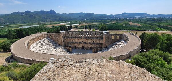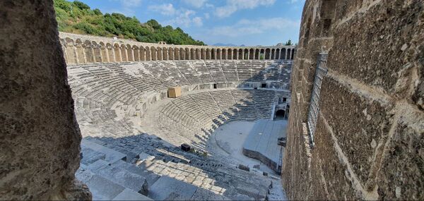 Одной из главных достопримечательностей Аспендоса является хорошо сохранившийся римский театр; его сценический портал обладал богатым архитектурно-скульптурным убранством[1].