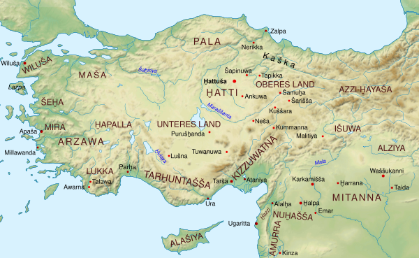 - Вилусия (Wilušiya, отождествляется с древнегреческим «Илион»)