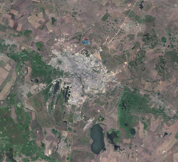 Город стоит на степной равнине. Рельеф занимаемой им территории представляет собой низкие надпойменные террасы. Преобладают каштановые почвы.