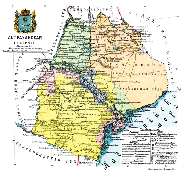- Астрахань, уезд и губерния // Энциклопедический словарь Брокгауза и Ефрона : в 86 т. (82 т. и 4 доп.). — СПб., 1890—1907.