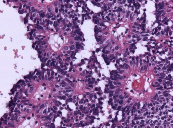 Окончательный диагноз устанавливается на основе гистологического и иммуногистохимического анализа опухолевой ткани. Характерными признаками астробластомы являются периваскулярные псевдорозетки, образованные опухолевыми клетками с эозинофильной цитоплазмой и эксцентрично расположенными ядрами. Иммуногистохимически клетки опухоли часто экспрессируют глиальный фибриллярный кислый белок и белок S-100, что подтверждает их глиальное происхождение[4][11].