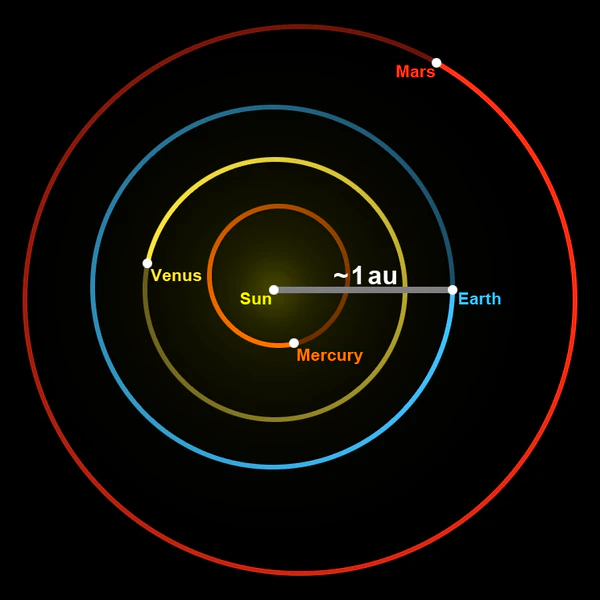 - Электромагнитное излучение, в том числе видимый свет, проходит 1 астрономическую единицу примерно за 500 секунд (8 минут 20 секунд).