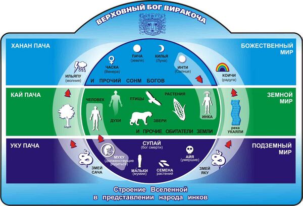 В представлении инков существовало три мира: Ханан Пача, Кай Пача, Уку Пача. Горизонт (в условиях гористой местности это была не только горизонтальная линия, но и вертикальные и любые другие) назывался кинрай, в свою очередь предполагаемая за горизонтом земля, и не видимая наблюдателем, называлась кинрайнин[5].
