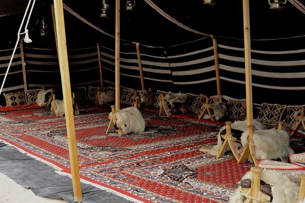 Важный продукт традиционного ткачества — палатка, «бейт аш-ша’р» («дом из шерсти»), длиной 3—12 метров и шириной 190 см, в которой проходила вся жизнь бедуинов[16]. Палатки должны выдерживать сильные ветра пустыни, яркое летнее солнце и зимние проливные дожди[17]. Обычно внешние стены палаток ткут из жёсткой чёрной козьей шерсти, которая плохо намокает, и тонких полос белой овечьей шерсти[17]. Внутренние стены украшены небольшим количеством окрашенной в красный цвет мягкой верблюжьей шерсти[18]. По мере износа стены палаток латали либо снимали и превращали в подушки[19].