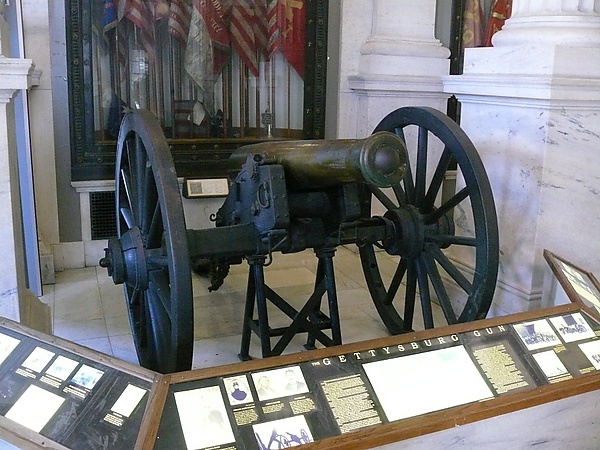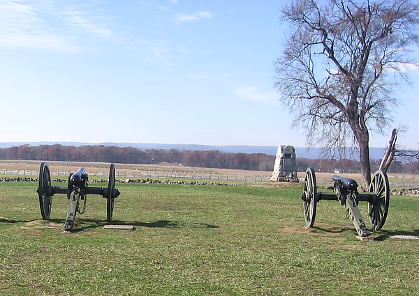 Из артиллерии на направлении их атаки находились только два 3-дюймовых орудия батареи Алонцо Кашинга. Сам Кашинг стоял с биноклем у каменной стены и наблюдал за действием своего огня. Его последними словами стали: «Прекрасно, держите такую дистанцию!», после чего он был убит наповал пулей в голову. Артиллеристы Фредерик Фагер и Кристофер Смит зарядили орудия остатками картечи, подпустили противника на 20 метров и дали залп. По словам Смита, в рядах наступающих картечь пробила две бреши по 50 футов каждая. После этого артиллеристы оставили орудия и бросились в тыл[94].