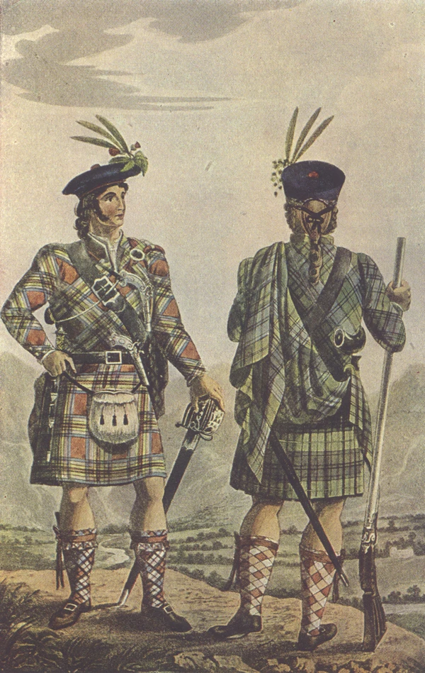 В соответствии с принципами и законами кланового общества, каждый шотландский клан в военное время представлял собой ополчение, где главнокомандующим был лично вождь клана, а младшими командирами — крупные арендаторы, обычно это были его ближайшие родственники. Они образовывали небольшую состоятельную часть кланового сообщества и могли позволить себе полный набор вооружения шотландского горца (мушкет, шотландский палаш, дирк, пистолеты, круглый щит — тарч) или, по крайней мере, бо́льшую часть этого комплекта. Основная масса горцев была вооружена гораздо проще, чаще всего они имели лишь дирк и какое-либо древковое оружие.