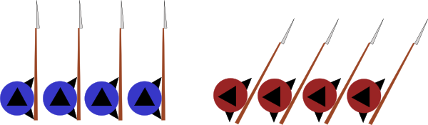 В бою клановый «полк» обычно выстраивался плотной массой, где в первых рядах стояли наиболее боеспособные и хорошо вооруженные воины (вождь клана и командиры, его родственники — «истинные горцы»), а за ними — все остальные клансмены.