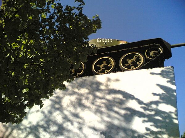 На 6-метровый бетонный постамент водружён танк, принимавший участие в январских боях 1944 года за освобождение Ленинграда.