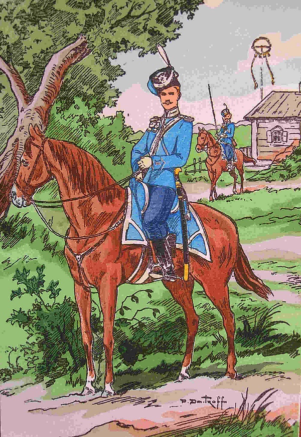 Лошади у казаков и офицеров были рыжими, а у трубачей — серыми.[15]