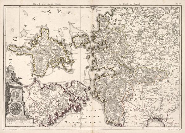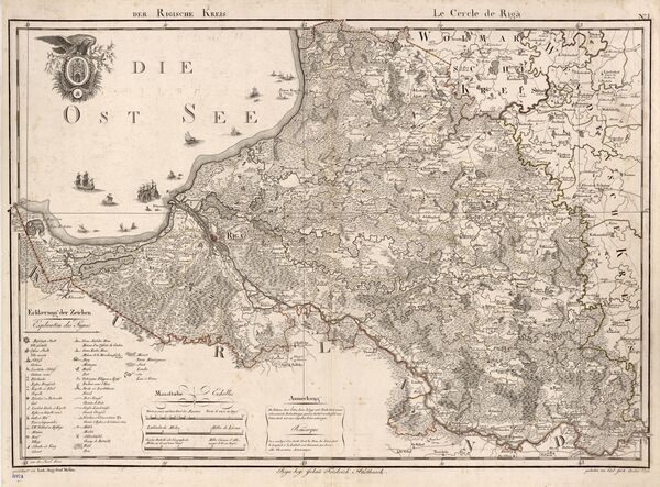 На работу над атласом ушло 28 лет (1782–1810). Его полный экземпляр охватывает 14 уездов Российской империи (Ревельское и Рижское наместничества). Топонимы приведены на немецком, эстонском и латышском языках, и, в частности, имеется около 7100 географических названий на территории Эстонии[3][4][5].