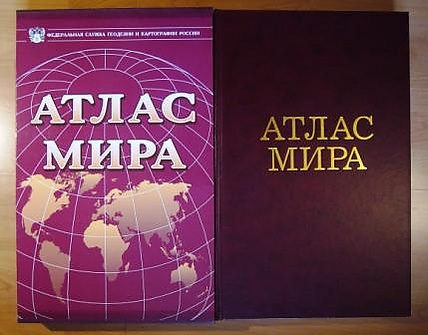 - Атлас мира. — М.: Федеральная служба геодезии и картографии России, 2002. (Стереотипное издание, отпечатанное в 2002 г. с диапозитивов 1999 г.) — 563 стр. ISBN 5-85120-055-3