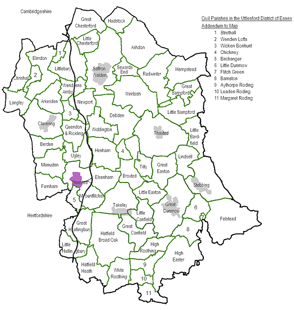 Район расположен в северо-западной части графства Эссекс, граничит с графствами Кембриджшир и Хартфордшир. На территории района находится лондонский аэропорт Станстед.