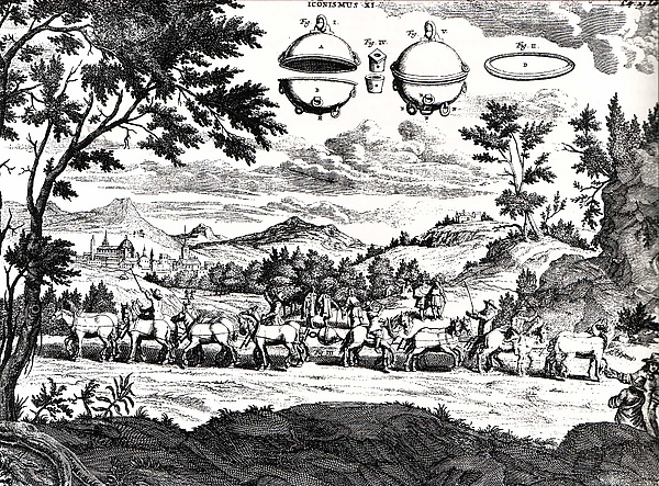 Наличие атмосферного давления привело людей в замешательство в 1638 году, когда не удалась затея герцога Тосканского украсить сады Флоренции фонтанами — вода не поднималась выше 10,3 метров. Поиски причин этого и опыты с более тяжёлым веществом — ртутью, предпринятые Эванджелистой Торричелли, привели к тому, что в 1643 году он доказал, что воздух имеет вес[5]. Совместно с В. Вивиани, Торричелли провёл первый опыт по измерению атмосферного давления, изобретя первый ртутный барометр — стеклянную трубку, в которой нет воздуха. В такой трубке ртуть поднимается на высоту около 760 мм.