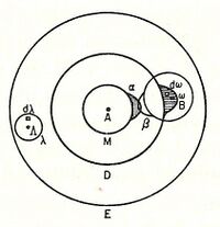 Больцман утверждает, что эта "чувствительная область" будет лежать на поверхности атома или может частично находиться внутри атома и будет прочно связана с ним. В частности, он утверждает: "только когда два атома расположены так, что их чувствительные области соприкасаются или частично перекрываются, между ними будет существовать химическое притяжение. Затем мы говорим, что они химически связаны друг с другом.Эта картина подробно описана ниже, показывая α-чувствительную область атома А, перекрывающуюся с β-чувствительной областью атома B: