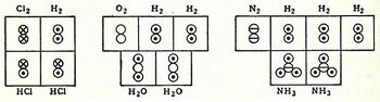 Два атома могут соответствовать «правилу восьми», или «правилу октета», не только путем переноса электронов от одного атома к другому, но и путем совместного использования одной или нескольких пар электронов... Два электрона, соединенные таким образом между двумя атомными центрами и удерживаемые вместе в оболочках двух атомов, я рассматривал как химическую связь. Таким образом, мы имеем конкретную картину этой физической сущности, того "крючка и глаза", который является частью убеждений химика-органика.