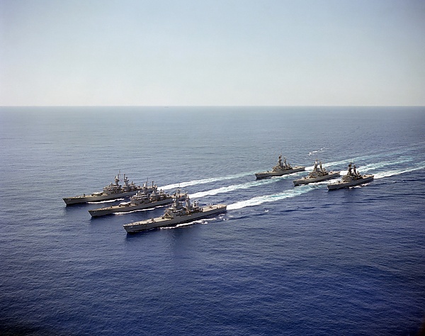 В начале 1950-х годов военных и конструкторов ведущих стран охватила «ядерная» эйфория. Несмотря на скромные удельные характеристики тогдашних ЯЭУ, ядерные реакторы планировались к установке на самолёты[1], локомотивы[2] и даже автомобили[3]. Естественно первыми кандидатами на звание «атомных» стали военные корабли. В 1955 году вошла в строй первая в мире атомная ПЛ «Наутилус». Однако если целесообразность установки ЯЭУ на ПЛ была вполне очевидной, то выгоды подобной энергетики для надводных кораблей представлялись не столь однозначными. В 1950-х — начале 1960-х годов в США развернулась открытая дискуссия о применении атомных надводных кораблей. Сторонники ядерной энергетики, которых возглавлял «отец атомного флота» адмирал Хайман Г. Риковер, выдвигали следующие аргументы в пользу ЯЭУ: