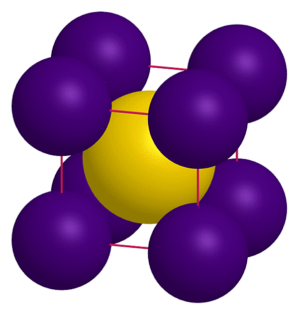 Соединение ионного типа. Межатомное расстояние составляет 0,369 нм. Золото проявляет степень окисления −1.