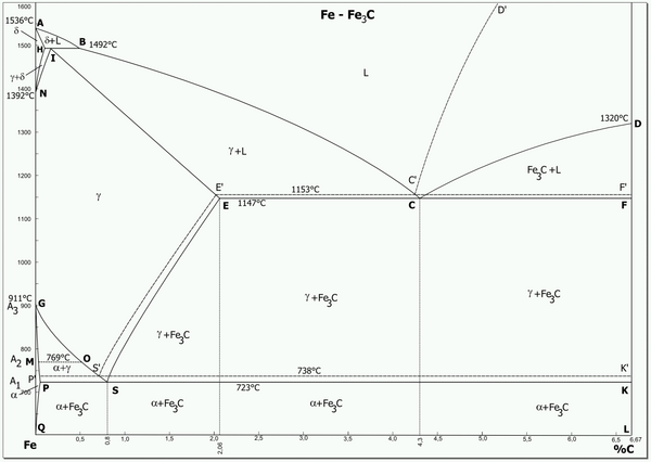 В углеродистых сталях аустенит — это твёрдый раствор внедрения, в котором атомы углерода входят внутрь элементарной ячейки γ-железа во время конечной термообработки (например, непрерывной закалки). В сталях, содержащих другие металлы (кроме железа, легированные стали), атомы металлов замещают атомы железа в кристаллической решётке и возникает твёрдый раствор замещения. В чистом железе существует в интервале температур 910—1401 °C; в углеродистых сталях аустенит существует при температурах не ниже 727 °C.