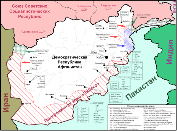 - с декабря 1979 по февраль 1980 — ввод советских войск в Афганистан, размещение их по гарнизонам;