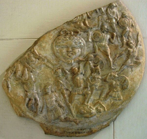 - Копией щита статуи с изображением битвы считается т. н. «Щит Стрэнгфорда» в Британском музее.