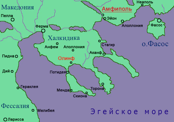 Успехи афинян и неудачи Филиппа произвели впечатление и на Халкидский союз, который вступил в переговоры с Афинами. Переговоры эти ни к чему не привели, но в дальнейшем сам их факт дал Филиппу моральное право выступить против Олинфа[19].