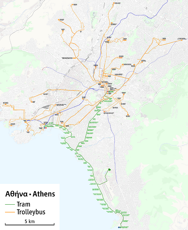 Долгое время афинский троллейбус оставался единственной троллейбусной системой в городе-столице страны ЕС (до начала процесса инкорпорации в Евросоюз стран новой демократии после 1991 года). Афинская троллейбусная сеть — самая крупная в Евросоюзе.