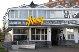 - Пивная «Афоня» в Ярославле. В пивной воссоздан дух советской эпохи, сок наливают из стеклянных конусов, салфетки стоят в гранёных стаканах, вешалки для одежды прибиты прямо на косяках и фирменное пиво «Афоня» подаётся по 0,5 литра в легендарной пивной кружке[17]. В мае 2010 года рядом с пивной открыта скульптурная композиция, включающая изображения штукатура Коли и сантехника Афони, а также кота, который, сидя на крыше, глазеет на героев. Утверждается, что установке скульптуры предшествовал опрос, в результате которого Афоня был выбран киноперсонажем, способным служить олицетворением ярославца[18][19].