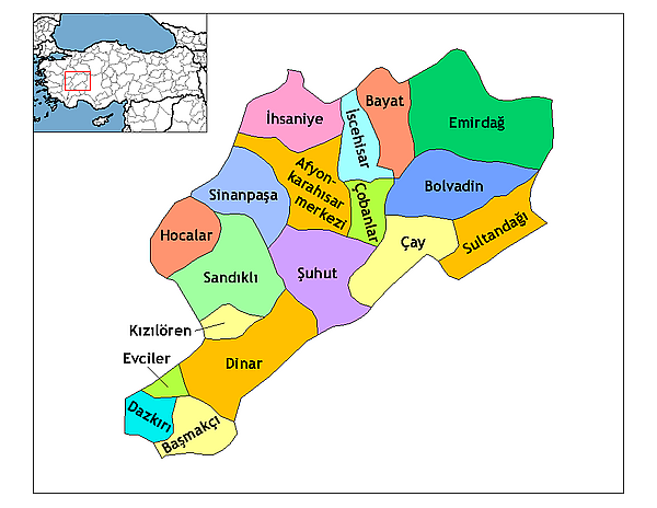 Крупнейшие города — Афьонкарахисар (128,5 тыс. жителей в 2000 году), Сандыклы, Болвадин, Эмирдагы.
