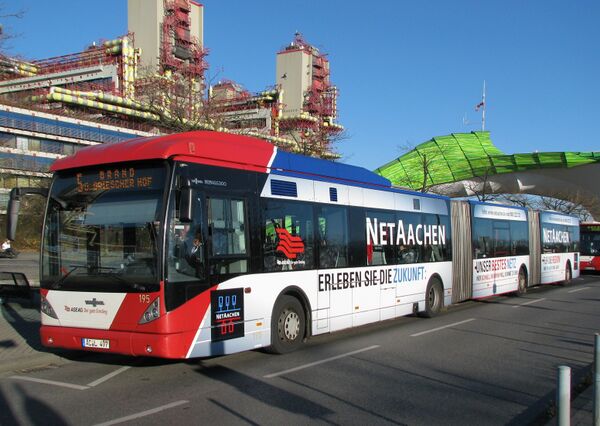 Первая линия конного трамвая была открыта в декабре 1880-го года. После электрификации в 1895-м году, она максимально достигала 213,5 километров (132,7 миль). В 1915-м годы, это была 4-я по протяженности трамвайная система в Германии. Многие трамвайные линии достигали такие окрестные города как Herzogenrath, Stolberg, Alsdorf А также, такие бельгийские и нидерландские коммуны как Vaals, Kelmis (затем Altenberg) и Eupen. Сеть ахенского трамвая была связана с бельгийской системой интерурбанов. Как многие трамвайные системы в Западной Европе, трамвай Ахена пострадал от слабого обслуживания инфраструктуры и местным политикам показался ненужным, а также помехой для автомобилистов. 28-го Сентября 1974-го года последняя трамвайная линия номер 15(Vaals-Brand) совершила свой последний рейс, а после — была заменена автобусной. В дальнейшем, вариант восстановления трамвайной сети или создания легкорельсовой системы в Ахене — был отвергнут на референдуме. .