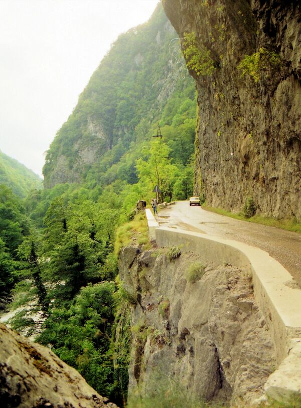 Его длина 3 км, глубина в самом глубоком месте 800 м, ширина по дну 20-30 м. Это один из глубочайших шрамов, рассекающих лицо Кавказа. Дорога идёт по каменному карнизу, вырубленному на отвесной стене ущелья. С одной стороны шершавая скала известняка взлетает на головокружительную высоту, с другой — опрокидывается в мрачную пропасть где глухо шумит река Мзымта.