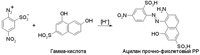 Ацилан прочно-фиолетовый РР получают из 4-нитроанилин-2-сульфокислоты диазотированием и азосочетанием в кислой среде (в которой ориентация преимущественно определяется амино-, а не гидроксигруппой) с Гамма-кислотой.