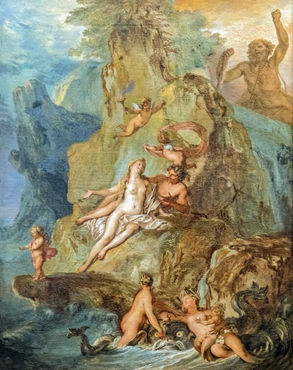 Галатея (Γαλάτεια), дочь Нерея и Дориды, была морской нимфой, упоминающейся в древних работах Гомера и Гесиода, где она описывается как самая прекрасная и самая любимая из 50 Нереид.[2] Овидий в своих «Метаморфозах» представляет её как возлюбленную Ациса (Ἄκις), сына Фавна и наяды Symaethis, дочери реки Симето.