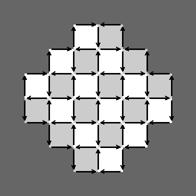 Пусть фиксировано некоторое разбиение бриллианта на плитки домино. Рассмотрим раскраску клеток бриллианта в шахматном порядке, в которой верхняя из самых правых клеток - чёрная. На каждой из границ клеток поставим стрелку в таком направлении, чтобы белая клетка была справа от стрелки, а чёрная - слева. Обозначим точку как . Рассмотрим любой путь от до , проходящий исключительно по границам разбивающих бриллиант плиток домино. Тогда для точки решётки функция высоты будет равна разности количества стрелок на этом пути, лежащих, соответственно, сонаправленно и обратно направленно этому пути.[2][5] |