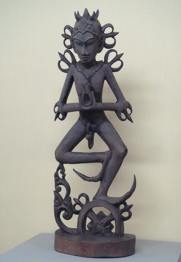 Он часто ассоциируется с богом солнца[5] и изображается окружённым пламенем в человеческом обличье. Его нагота выражает «освобождение сознания от чувственных стремлений»[3].
