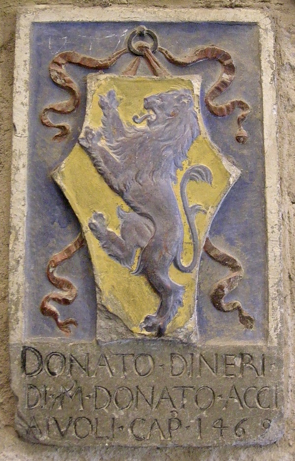 - Линия, оставшаяся во Флоренции, изобиловала даровитыми людьми. Донато Аччайоли (род. в 1428 г., † 28 августа 1478 г.) — заслуженный государственный муж и ценимый всеми писатель; из его сочинений дошло до нас «Caroli Magni vita» (Менкен, «Scriptores rerum Germanicarum», т. I), латинский перевод некоторых жизнеописаний Плутарха (1470) и часто печатавшийся комментарий к «Этике» Аристотеля. Его сын Роберто Аччайоли занимал первое место среди приверженцев партий Медичи во время перехода от республики к княжеству.