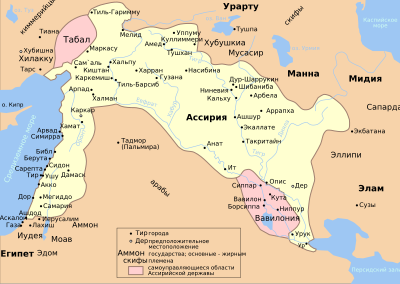 Используя продвижение киммерийцев вглубь Малой Азии, что представляло значительную угрозу как для ближайших соседей — Табала и Хилакку (Киликии), так и для более удалённых западных областей Малой Азии, Ассирия смогла добиться признания своего господства «мирным» путём от Мугаллу, царя Табала, и Сандашарме, царя Хилакку. Оба царя около 662 года до н. э.[14] послали в гарем Ашшурбанапала своих дочерей с богатым приданым, а на их царства была наложена дань лошадьми.