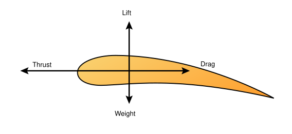 На рисунке приведены только главные векторы сил, действующих на тело в потоке. Здесь показаны четыре силы: сила тяги, генерируемой двигателем, сила сопротивления со стороны воздуха, подъёмная сила и сила тяжести. Следует иметь в виду, что для летательных аппаратов линии действия указанных четырёх сил не пересекаются в одной точке. Поэтому при анализе аэродинамики конкретных конструкций большое значение имеют величины моментов сил, которые исчисляются, например, относительно центра масс летательного аппарата. Для оценки свойств движения, а особенно для эффективного управления движением, следует принимать во внимание фактическое распределение давления по поверхности тела. При решении задачи по определению указанных характеристик физических полей гипотетически можно надеяться на использование экспериментальной техники. Именно такой путь использован братьями Райт при создании первого самолёта. Отсутствие глубокого понимания закономерностей аэродинамики они компенсировали большим объёмом выполненных экспериментов.