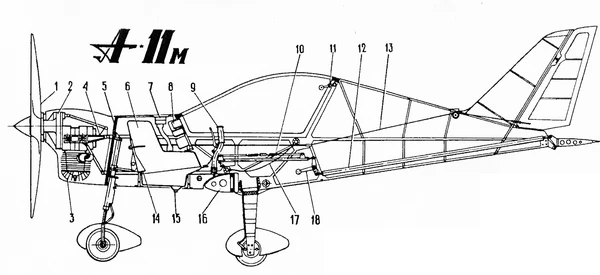 А-11 имеет выполненный из дерева фюзеляж. Стрингеры сделаны из сосны, обшивка — из фанеры. Передний трёхслойный шпангоут, выполняющий роль противопожарной перегородки, сделан из дюраля[9].