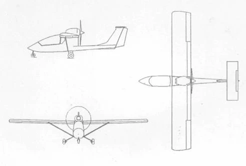 Винт — толкающий, двухлопастной, расположен позади крыла в районе его соединения с фюзеляжем[1].