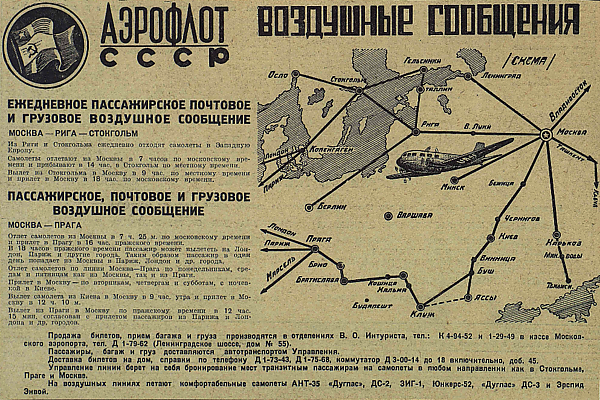 1 мая 1922 года, вскоре после окончания Гражданской войны в СССР, советско-германская авиакомпания «Дерулюфт» открыла первую в стране международную авиалинию «Москва — Кёнигсберг». 29 июля 1922 года товарищество «Научно-экспериментальная станция Авиакультура» совершила первый пробный полёт по регулярной внутренней линии «Москва — Нижний Новгород».
