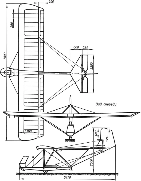 Фюзеляж отсутствует, вместо него имеется плоская силовая ферма, к которой напрямую крепятся крыло, элероны, хвостовое оперение, пол, носовой обтекатель, сиденье, ручка управления, педали[2].