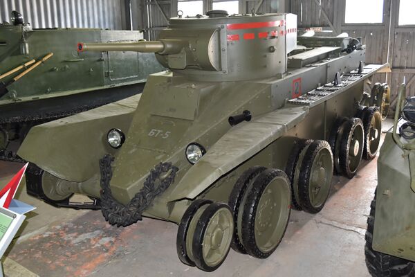 БТ-5 — советский лёгкий колёсно-гусеничный танк. Серийный танк семейства БТ («Быстроходные танки»). Принят на вооружение в соответствии с военной доктриной, определившей преимущества скоростных крейсерских танков, способных в кратчайшие сроки покрывать большие расстояния и действовать на оперативных просторах. Выпускался серийно ХПЗ в 1933—1935 годах.