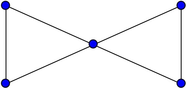 В теории графов граф «бабочка» (а также «галстук-бабочка» или «песочные часы») — это планарный неориентированный граф с 5 вершинами и 6 рёбрами[1][2]. Граф может быть построен объединением двух копий циклов C3 по одной общей вершине, а потому граф изоморфен графу дружеских отношений F2.