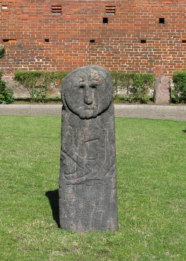 «Прусские бабы», как языческое наследие, могут изображать фольклорных героев, прусских богов или былинных героев, погибших на чужбине.