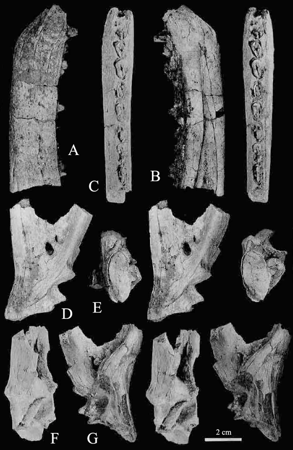 - несколько шевронов и их фрагментов (из них лишь немногие находятся в сочленении с хвостовыми позвонками);