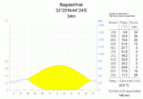 В мае-июне отмечаются ветры, дующие с северо-запада; в этот период в Багдаде и его окрестностях часто случаются пыльные и песчаные бури — «хамсины».