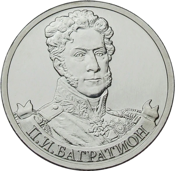 - В 2012 году Центральным банком Российской Федерации была выпущена монета (2 рубля, сталь с никелевым гальваническим покрытием) из серии «Полководцы и герои Отечественной войны 1812 года» с изображением на реверсе портрета генерала от инфантерии П. И. Багратиона[32]