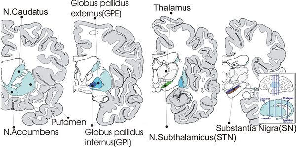 Нарушения в базальных ядрах приводит к моторным дисфункциям, таким как замедленность движения, изменения мышечного тонуса, непроизвольные движения, тремор. Эти нарушения фиксируются при болезни Паркинсона и болезни Хантингтона.